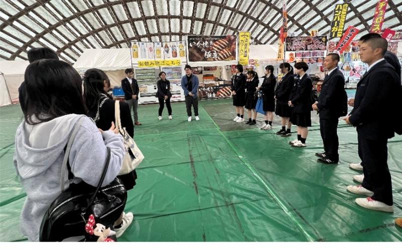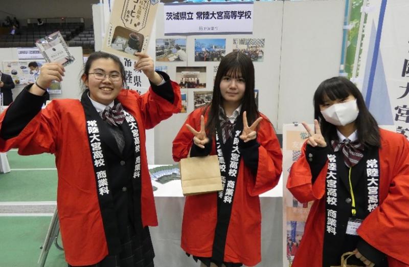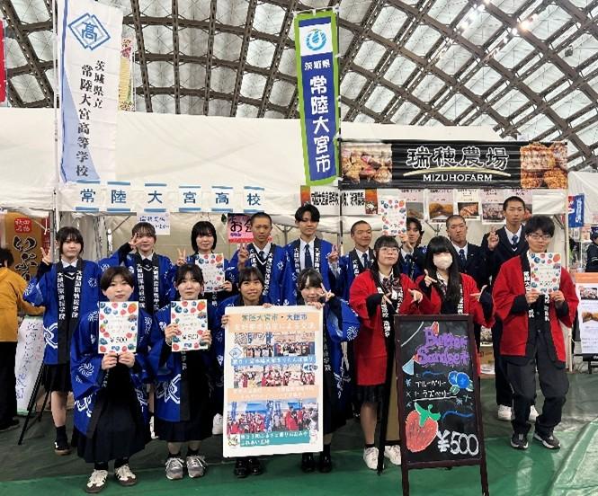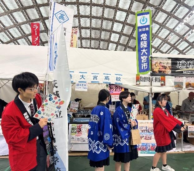 常陸大宮市は平成27年度に秋田県大館市と友好都市協定を締結しました。本校では令和2年度から友好都市事業の一環として、商業科の生徒が大館市にある秋田県立大館国際情報学院高等学校と共同で商品開発を行っています。令和5年度からは大館市で毎年開催されている「本場大館きりたんぽまつり」と、常陸大宮市で開催される「ふるさと祭りおおみやふれあい広場」で、開発した商品を販売しています。