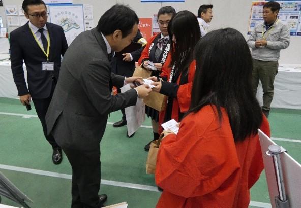 昨年度2年生が商品開発したドリップコーヒーのパックを配布したところ、とても好評で、商品開発の協力依頼もたくさんいただくことができました。こうしたリアルな商談はなかなか経験することができないので、名刺交換のやり方や言葉遣い、商談の進め方など多くのことを学びました。今回名刺交換させていただいた企業の方々や、商品開発のお話をくださった企業様との関りを今後も継続していきたいと思います。