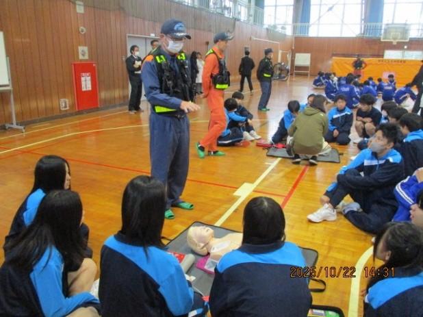 避難後には、消防士の方々のご指導のもと、AEDの使い方や、心肺蘇生法講習、煙道体験を行いました。どの生徒も真剣に取り組み、防災や救命について学ぶ貴重な機会となりました。