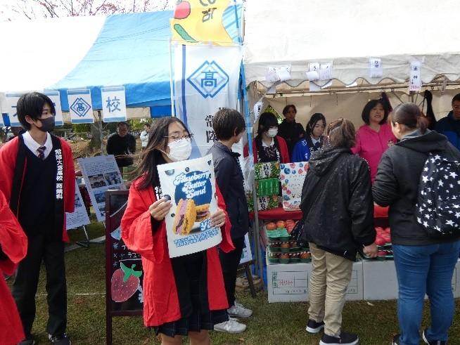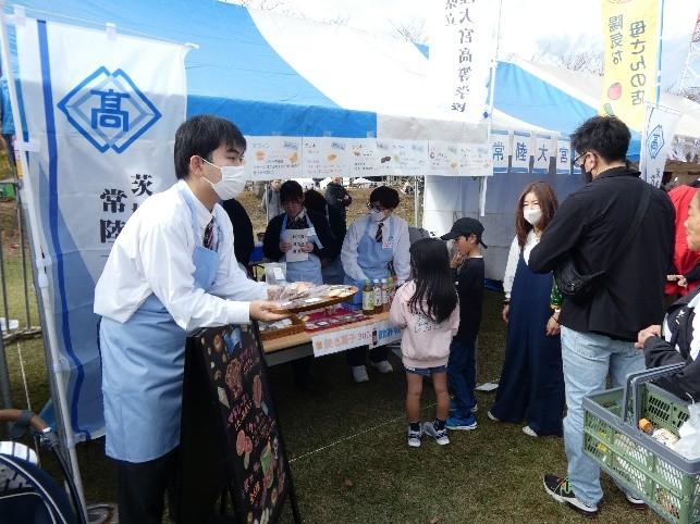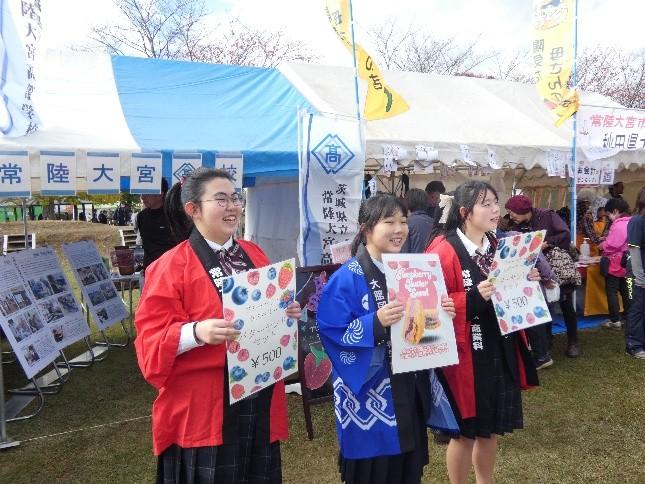 11月3日(月)に常陸大宮市西部総合公園にて行われた、「第35回ふるさと祭りおおみや ふれあい広場」に食物部と商業科が出店しました。