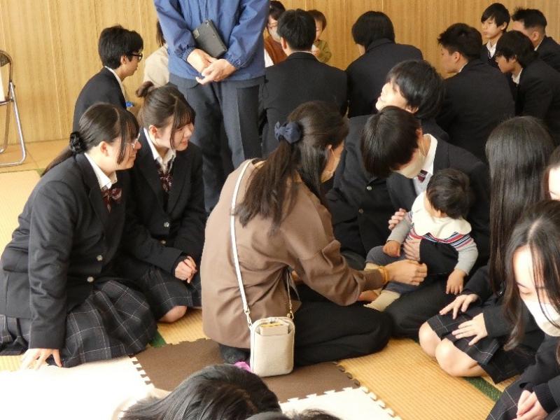 10月29日に赤ちゃんふれあい体験を行いました。当日は、3人の赤ちゃんとそのお母さん方と交流をしました。