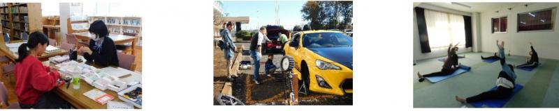 ペットボトルキャップで雑貨づくり、 自動車のしくみ教室、 ヨガでリラックス、